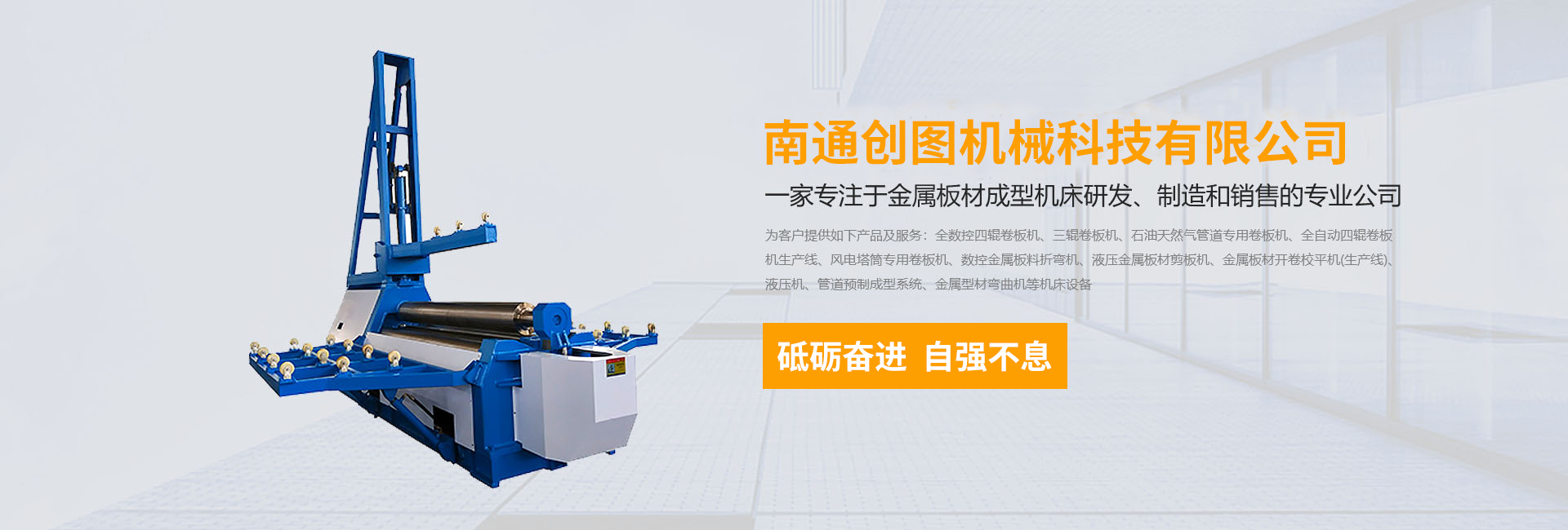 南通創(chuàng)圖機(jī)械科技有限公司坐落在長(zhǎng)江三角洲北翼--江蘇省南通市海安市,是一家專(zhuān)注于金屬板材成型機(jī)床研發(fā)、制造和銷(xiāo)售的專(zhuān)業(yè)公司,公司有著專(zhuān)業(yè)的設(shè)計(jì)、制造和銷(xiāo)售團(tuán)隊(duì)。南通創(chuàng)圖機(jī)械自成立至今,砥礪奮進(jìn),自強(qiáng)不息,努力為客戶提供如下產(chǎn)品及服務(wù):